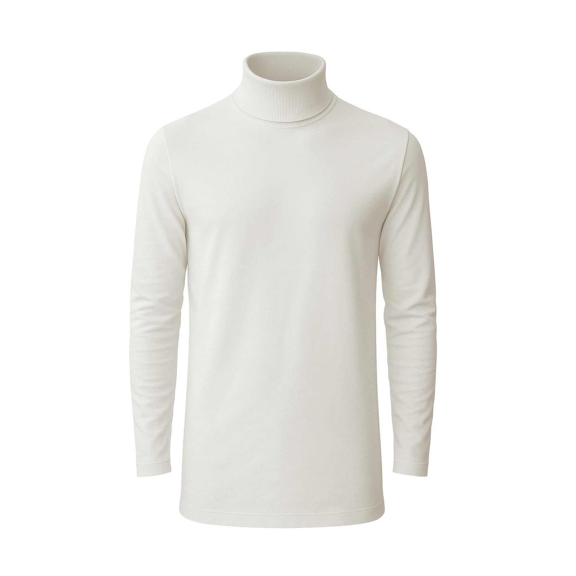 Men's Turtle Neck Long Sleeve Heavy-Weight Ultra-Soft 100% Cotton T-Shirt